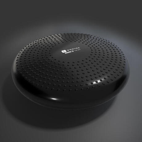 Framför allt är det viktigt att inte känna golvet när du sitter på den. Om du gör det, behöver du blåsa upp den eller pumpa upp den mer. För att sedan ställa in din nivå: ju mer uppblåst den är, desto mindre tränar du balansen. Ju mindre uppblåst din Balance Soft Disc är, desto mer tränar du balansen. Dessutom ger dropparna mer instabilitet och ökar blodcirkulationen.