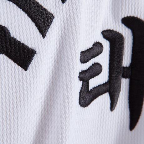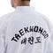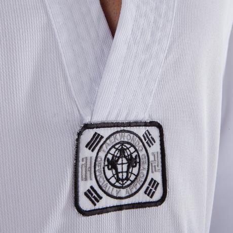 Av utseendeskäl har vi tagit fram en dobok som faller inom ramarna för taekwondons estetiska regler: materialet är räfflat, kragen är vit och på tunikans rygg återfinns taekwondons klassiska kanji.