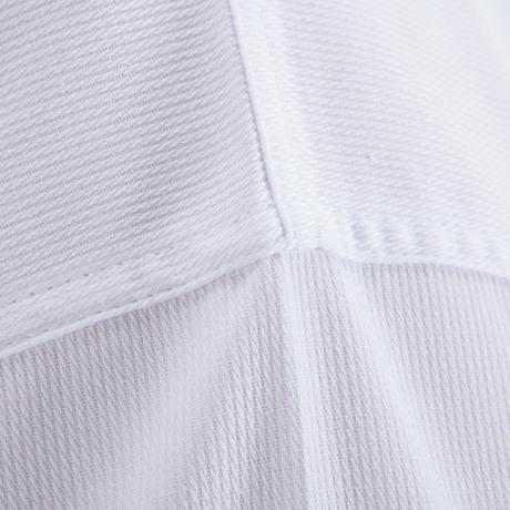 Därför har vi till denna dobok valt ett vävt material som faller inom ramen för taekwondons traditionella regler. Och för att den ska sitta mer bekvämt, vara lättare och mer slitstark, består materialet av 65 % bomull och 35 % polyester. Dessutom torkar den snabbare!