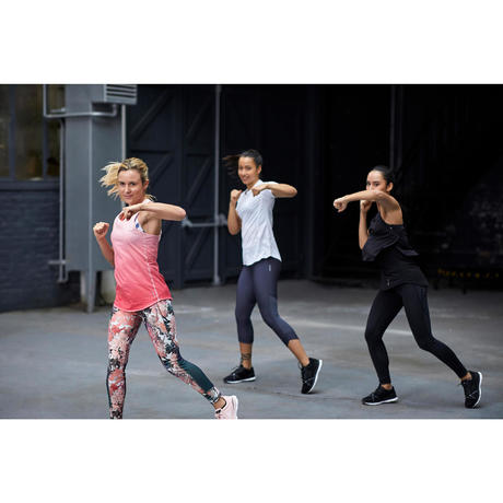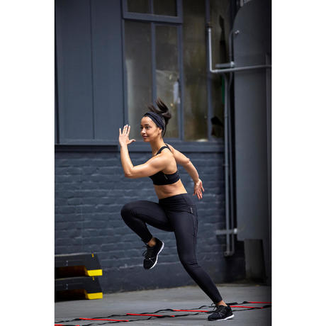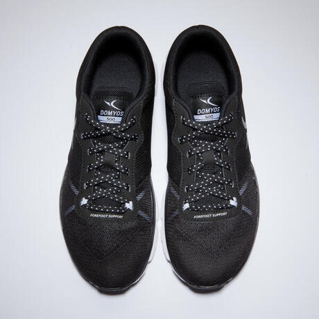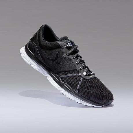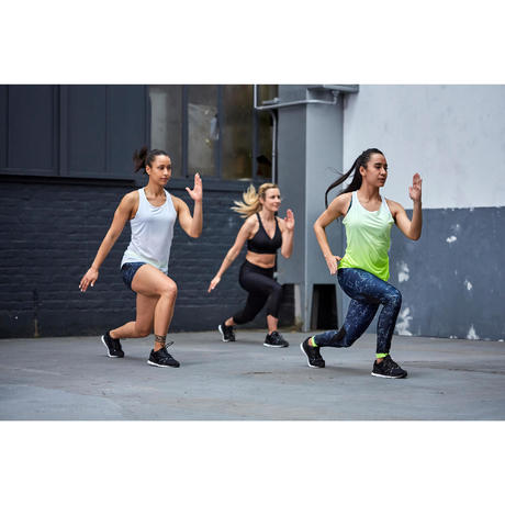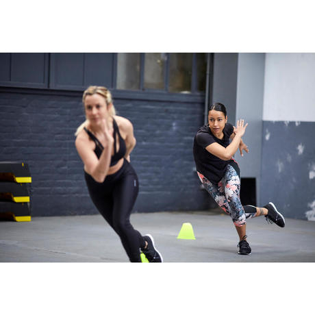 De justerbara remmarna på träningsskon 500 ger optimalt stöd för framfoten i de rörelser åt olika håll som är typiska för fitnessträning.