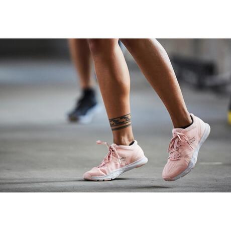 Träningsskon 900 för dam erbjuder en sula med goda studsegenskaper för att snabbt och säkert byta riktning.