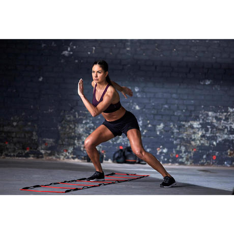 Träningsskon 900 för dam erbjuder en sula med goda studsegenskaper för att snabbt och säkert byta riktning.