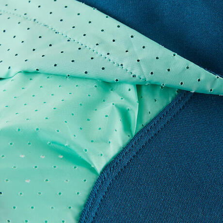 Material: polyester och elastan för effektiv svettavledning. Luftiga delar. Försedd med huva och sidofickor med dragkedjor.