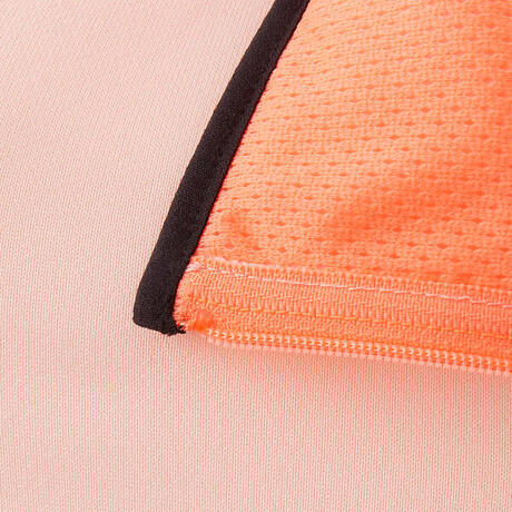 Jacka med fickor. 100 % polyester som ger god svettavledning. Svarta, elastiska kantband. Tyget är mycket mjukt på insidan. Strukturerad yta på insidan, något matt yta på utsidan.