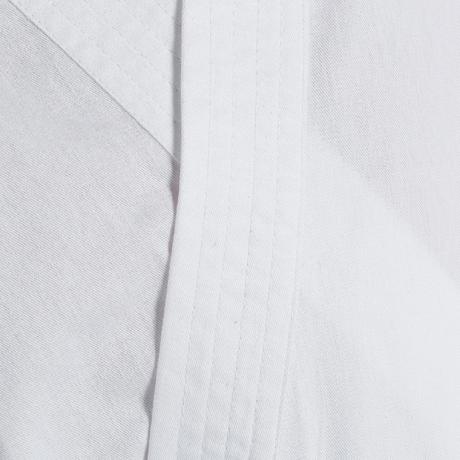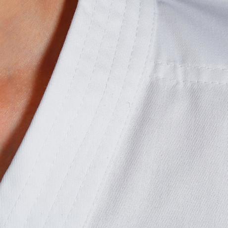 Karatedräkten är förstärkt i flikarna på kimonon och mellan benen på byxan.