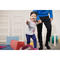 Roliga gympa-aktiviteter i banor med anpassad utrustning, ledda av en lärare.