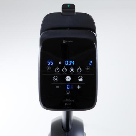 Displayen på motionscykeln Domyos E SEAT inbegriper: